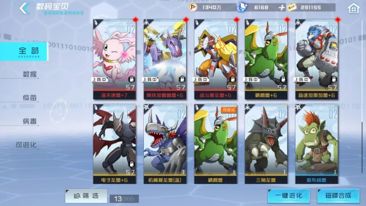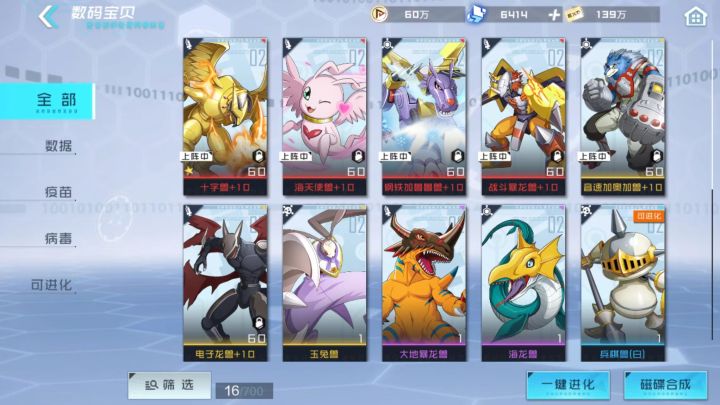 替补:恶魔女,相棋白,猪八戒,鼠,神圣天使,天使兽,巨鲸,黑暴龙,祖利,梅尔瓦(超究)。