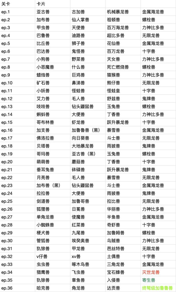 ep.1-ep.28都可以在卡片获得途径里查看ep.29-ep.36游戏内未给出,均为人工统计所得。可供扫荡参考