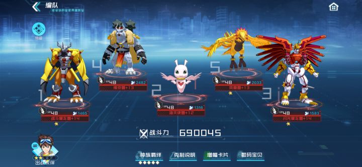 区服:安卓QQ47区小丑皇角色ID:10121196角色昵称:LD守护者QQ账号:1136210562下面直接开始正文:首先说明一下这是一个仅适用于新手开荒用的新手攻略。和大多数卡牌游戏一样,游戏前期主要就是推图,尔推图将就的就是一个效率,所以我推荐 【疫苗火队】话不多说直接上图这两个就是队成型图片唯一的区别在于海天使和炽天使下面给大家讲解一下这几个数码宝贝的作用1.这个是单体