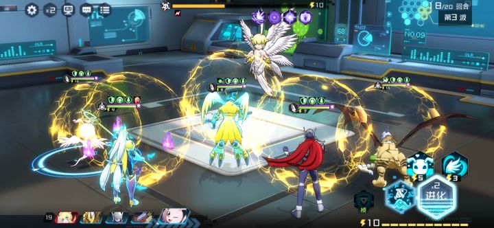 第一关 华丽优先驱散白兔子 驱散两个以上即可大概率保证狐狸存活 海天使只需第一回合给狐狸套盾防止其暴毙 超频只给十字 第一关结束时最少有两个进化能量