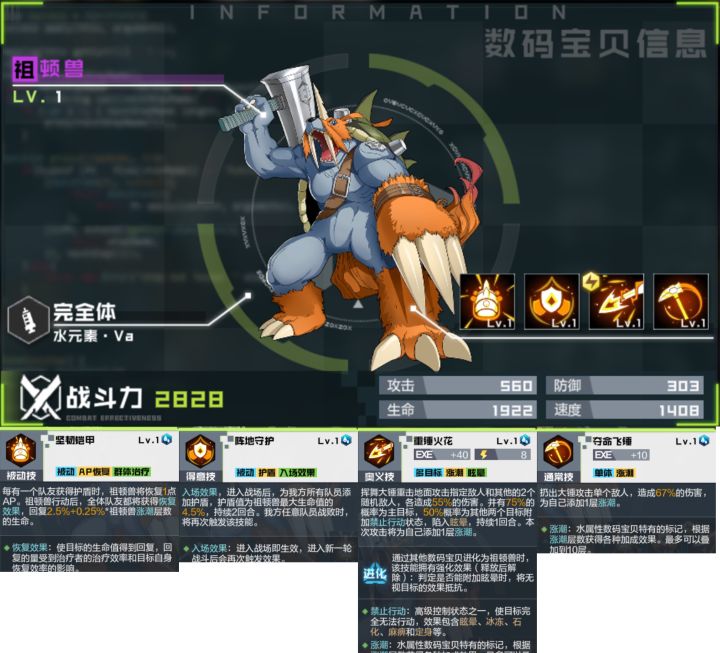 锤子(祖顿兽)建议每人养一只,控制稳定,适配所有阵容,并且基础速度是所有兽里面排前五的。网域,资料馆打不过?带锤子吧!新世纪都是五个怪,锤子最多可以控三个。没有控到三个退出去重开,控到三个再打。只要抗住另外两个的伤害迅速结束战斗就可以越战推图,实在不行,第二回合进化维京兽再控制一回合(手动)。pvp只要对方没兔子(智天使兽)同样可以越战打,上测我13万把17万的控到死(前提是你锤子速度比对方的锤子速度高)。锤子生命百分比给队友盾。四测活力插件2件套生命加成由百分之20改为百分之30,间接加强锤子。新世纪所有兽都可以靠孵化得到,都可以进化成究极体。完全不用担心抽不到的问题。
