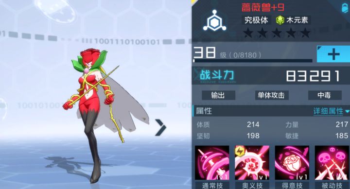 游戏玩了几天,跟大家分享一下个人心得,这次玩的是木属性,想走毒队,自己研究的一套阵容,前期看还算可以,推图打副本都可以,pk试了一下,也没有那么弱,后期成型应该可以一战,说一下前期发育,发育主要是前期先做任务,这个没什么好说的,过完任务之后,先打网域,打到打不过之后打插件副本,安装插件战力飙升,战力主要就是插件,前期插件换的块,可以选择不升级,0氪和微氪看情况,打不过就得升级,体力买满,体力就是经