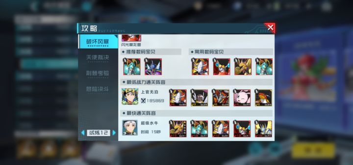 试炼12,仅供参考。有点看脸,因为输出不够,天女血量也不太够,所以要多连击一两次。而且凤凰兽不能普攻天女兽,天女兽核心要带净化,赌前两次驱散(海天使速度再快点,应该就不需要了)。进化点全留给海天使,战斗暴龙兽速度提到跃升暴龙兽前面,压力应该会小不少,但是这就要求伽楼达的命中要够高,自己抉择吧。目前肯定不是最优,但是我懒得再尝试了😉