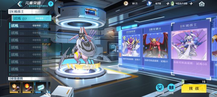 进化的盘子去刷玩法里面有个元素突破,最好刷第8至第9,这样划算紫的概率大。