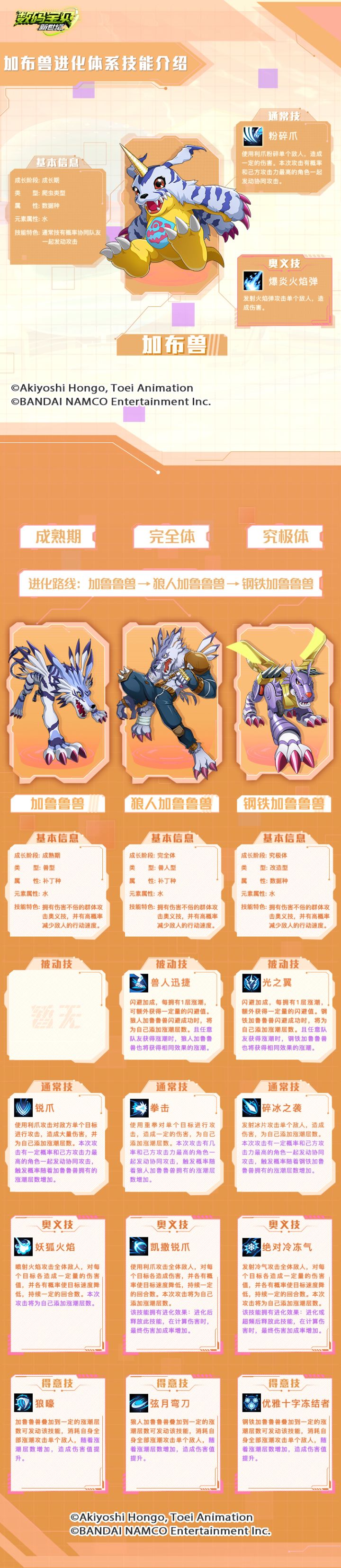 数码宝贝情报丨爆炎火焰弹发射!加布兽进化体系技能介绍