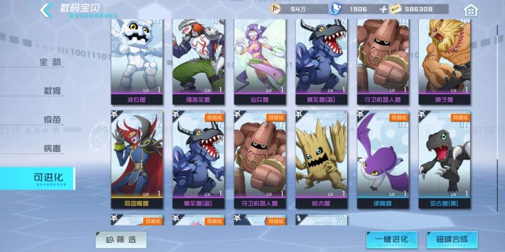 手机型号:HWI—AL00游戏UID:10335694反馈内容:可进化界面错误显示有完全体可以进化反馈截图