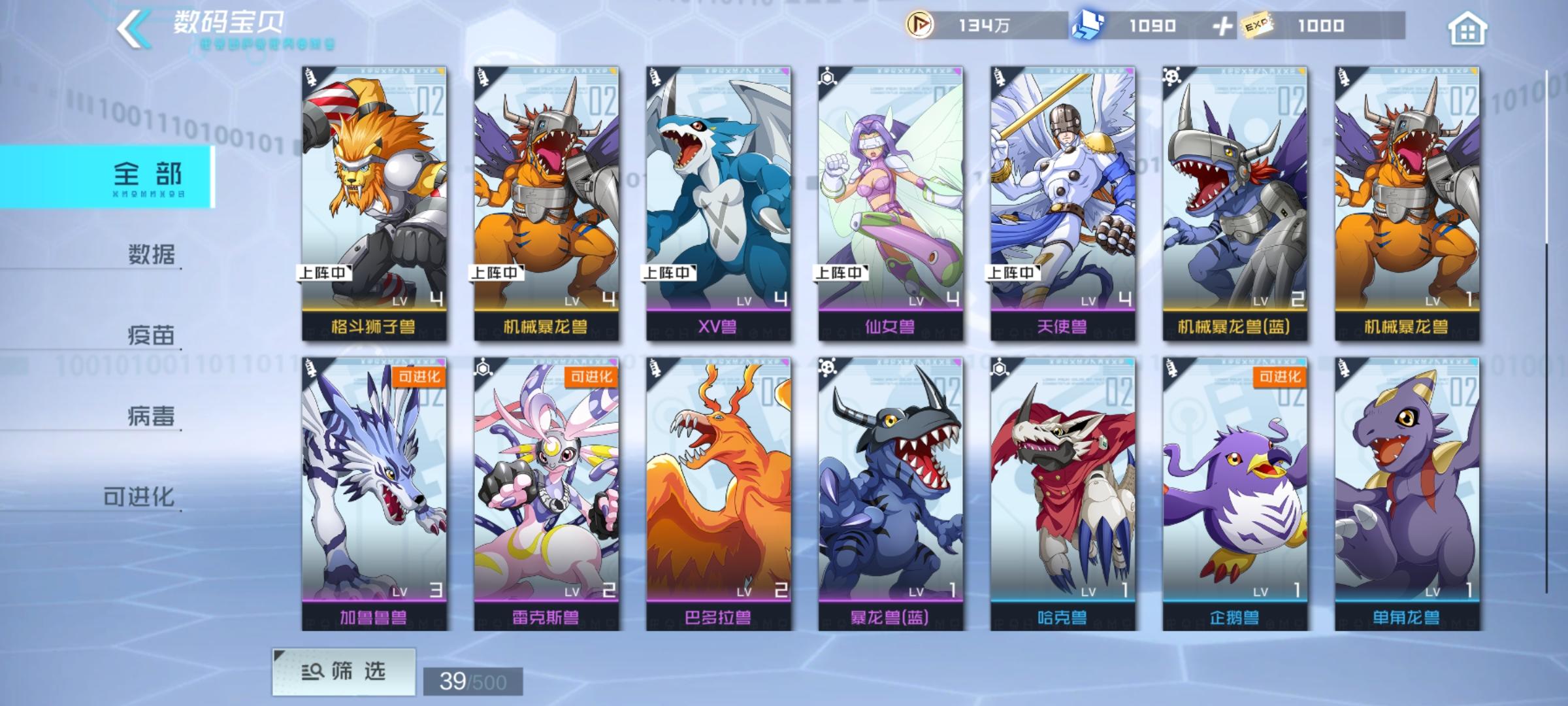 我也就是个图鉴党,弄了31个究极体,包里还有6个核心,五六十完全体能当材料。