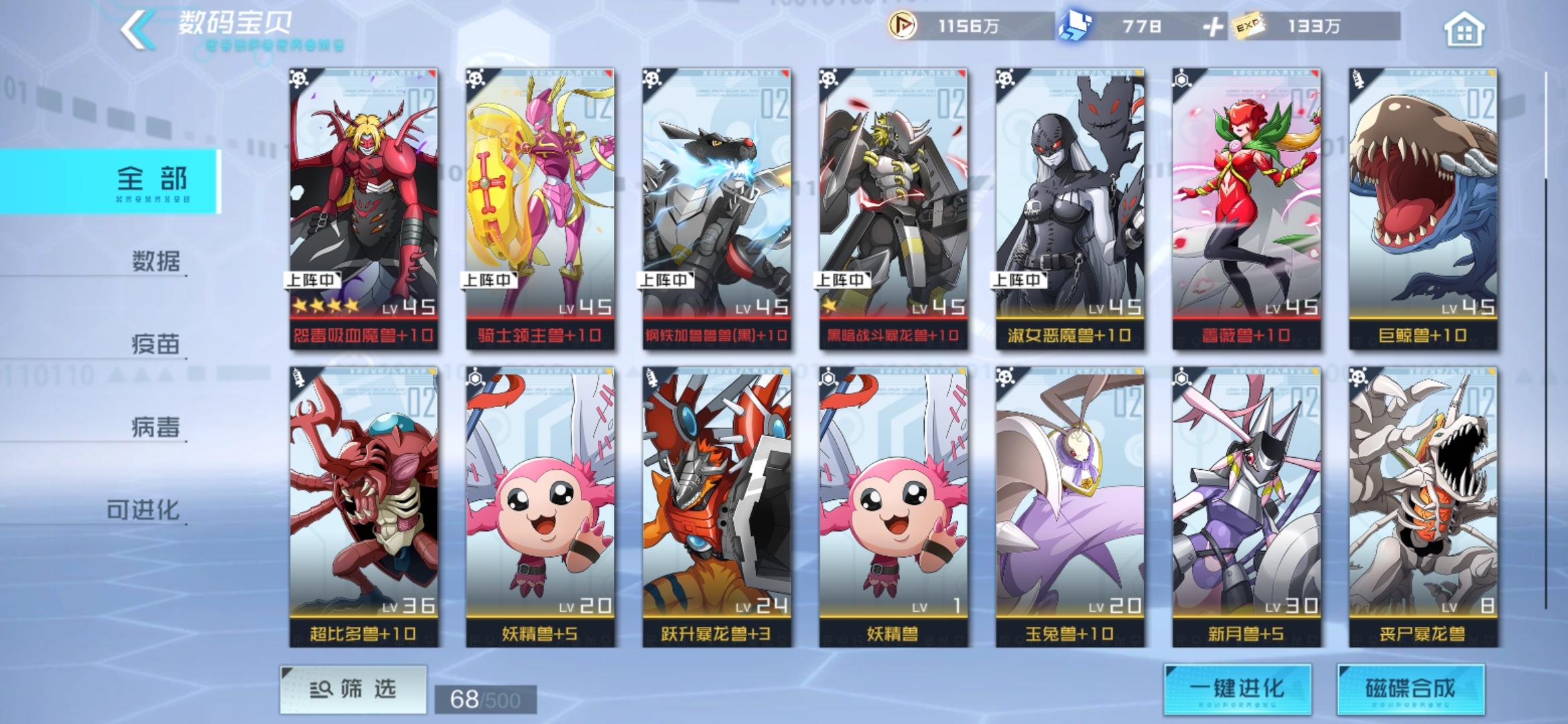 从开服到现在,心中都只有一个目标就是搞个暗队,前前后后也看了不少帖子,这是这几天的成果一开始的想法是组一支由1.黑龙+2.尼普顿+3.海天使+4.维京兽+5.凯王兽,组成的一支暗队,后面因为凯王兽的原因,于是把凯王兽换成了智天使恶,具体情况上图但是因为觉得味道差那么一点,于是又跑去把钢铁加鲁鲁黑和怨毒吸血鬼兽弄了出来,又重新搞了一支,如图所示但到了最后还是差点意思,以为是怨毒吸血鬼出了问题,