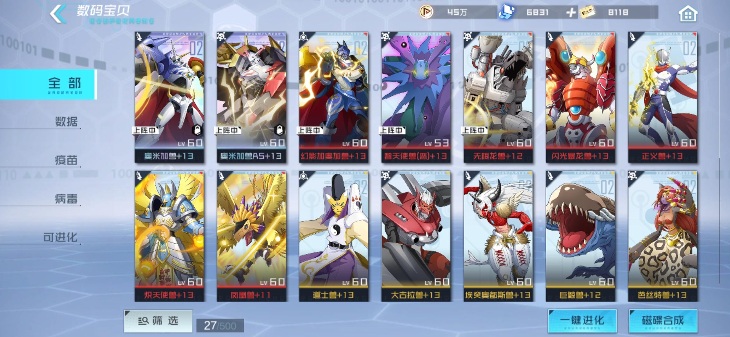 第二天了大佬们,有没有什么培养建议啊,个人挺喜欢PVP的,想搞个PVP跟推图都可以的队伍,一定要有奥米加兽的阵容,奥米加兽绝对真爱了呜呜呜呜呜呜