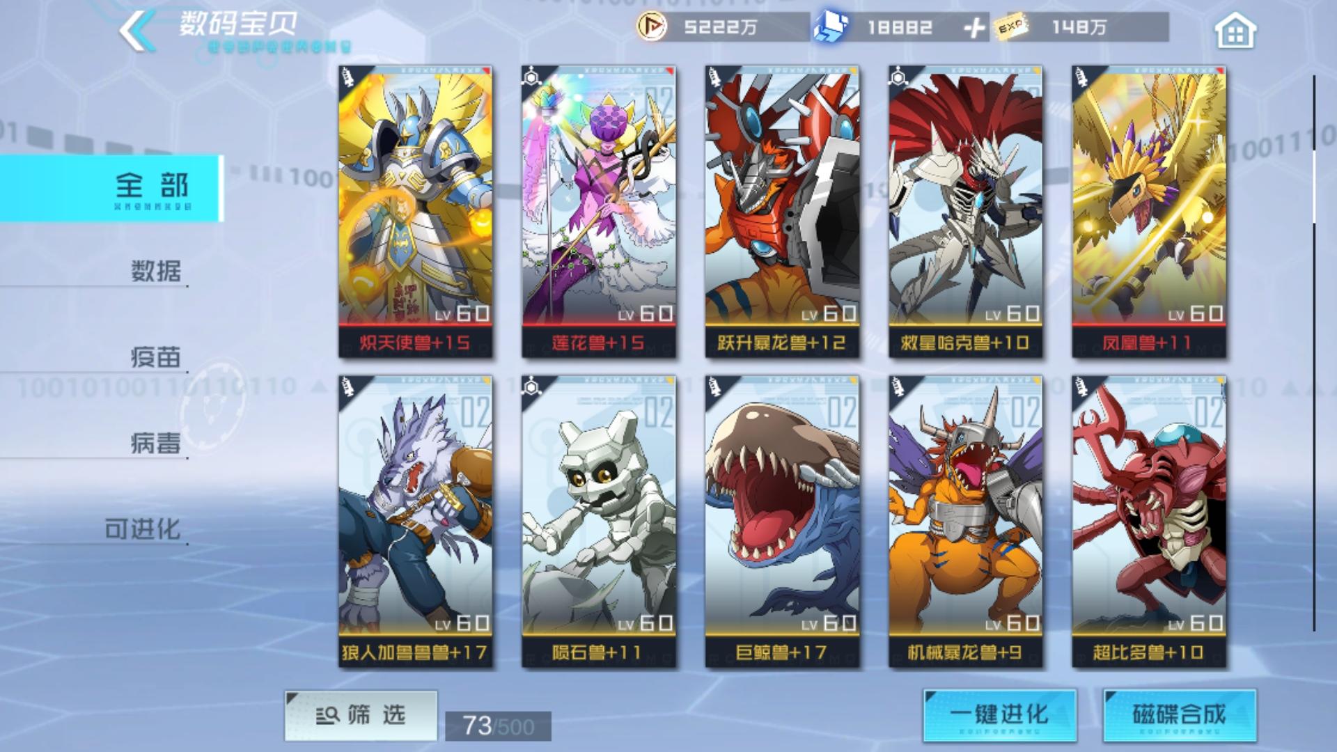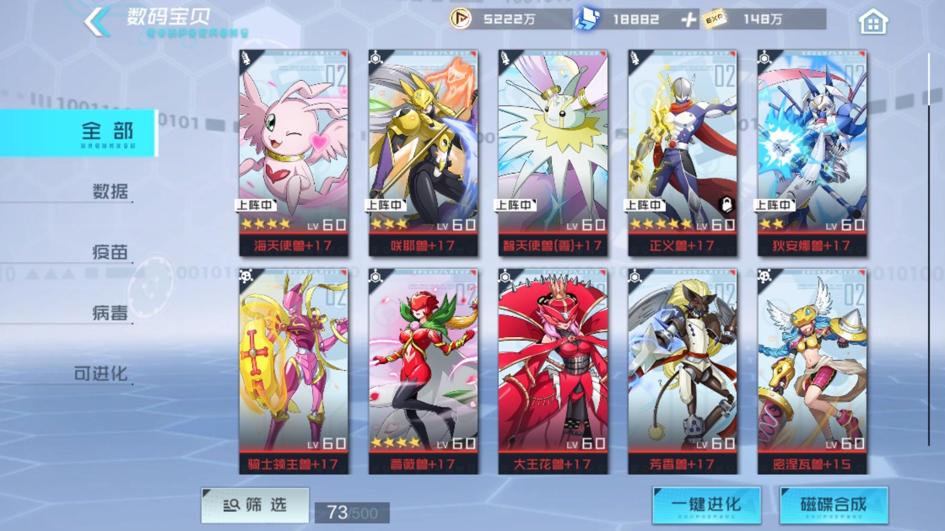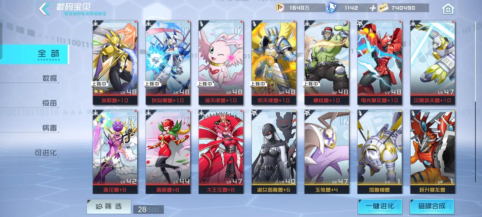 挂一下,不知道该怎么配,或者加什么数码宝贝 玩游戏的初衷是收集美女,就变成了现在这样 现在想培养一下战力,求大佬提提意见