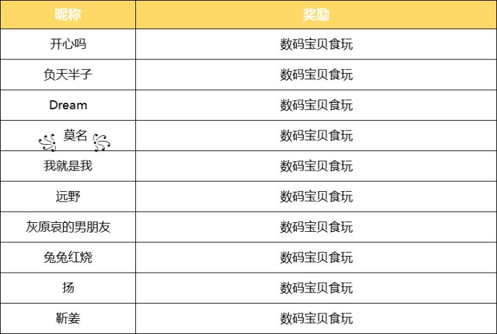 *本期活动中奖名单*(所有抽奖名单均由在线随机数生成器随机产生)恭喜以上队长,请在7个工作日内进入【数码宝贝新世纪-tap1群】:646229273,联系管理员@西原歌子 进行兑奖核奖,超过期限将视为自动放弃。本期没有中奖的队长也要继续加油,多多参与活动,说不定下一期的手办你就能抱回家噢~———————————————————————————————————————炸鸡,汉堡,寿司,甜筒.