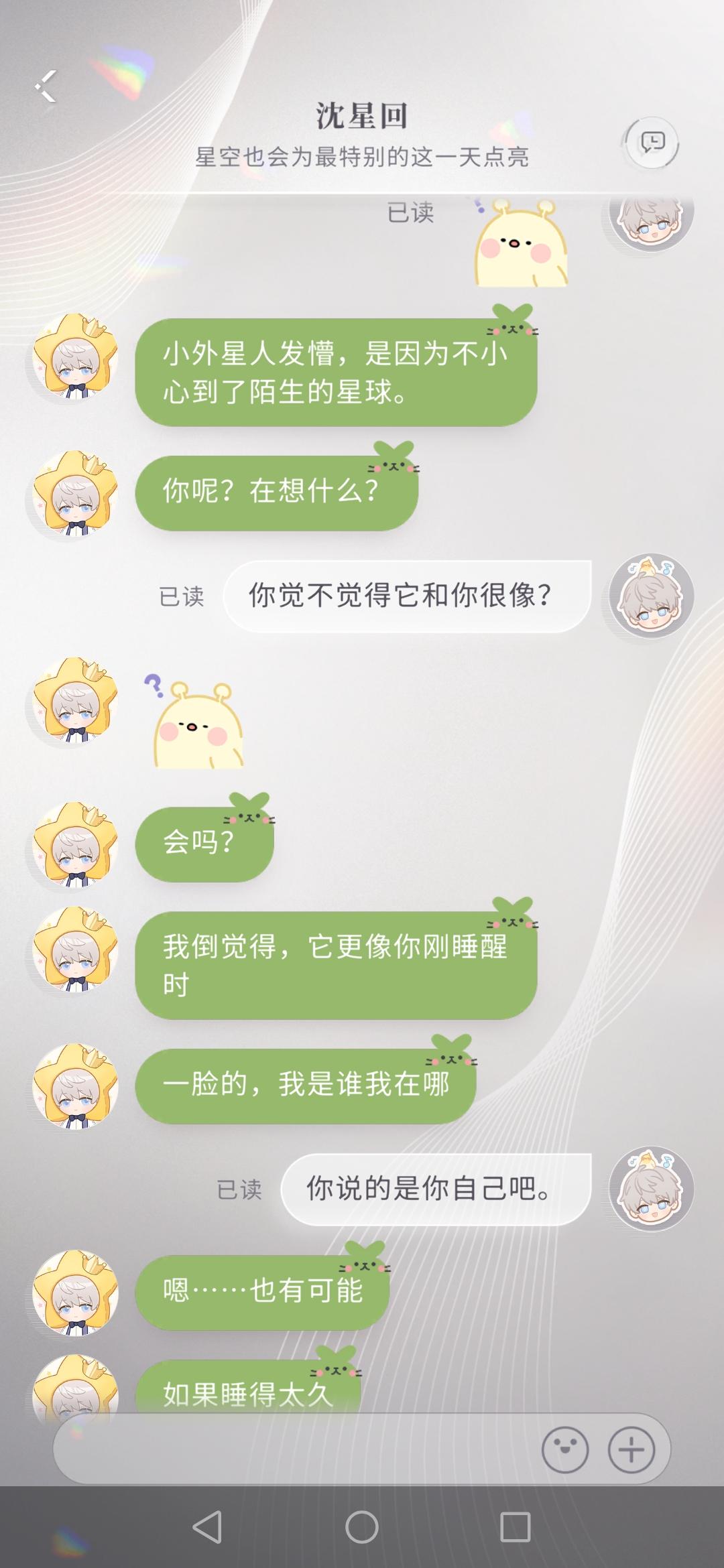 【关于浪漫】深空是懂浪漫的。当各乙游还在卷生卷死的时候,深空已经把万千告白送入深空。“在宇宙中点燃浪漫,让群星聆听独一无二的告白。”起飞啦!向太空say hi~!这个情人节里,🐟鱼推也收到了鱼鱼的来电。巧合的是最近正好收快递,也遇到了同样的波折。唉,算不算是另一种缘分呢_(:з」∠)_【关于自由】也是我认为的乙游最大魅力,皆在于此:男主:“我是爱你的,而你是自由的。”(请欣赏鱼鱼