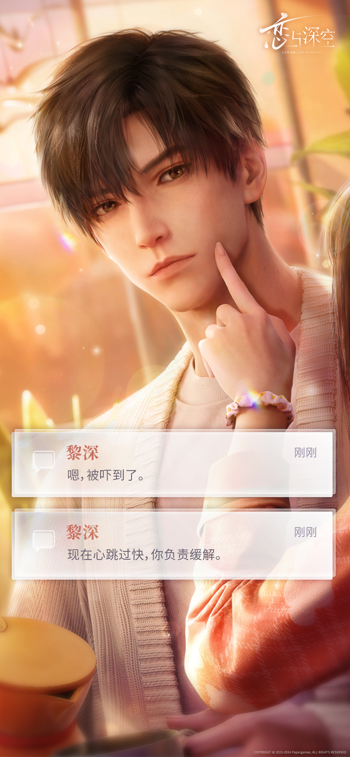 这个情人节道具有三种选择,前两种都是不一样的灯光,照在黎深身上特别好看,但是最重要的是第三个选项—关灯!房间的灯光一下子暗下来,黎深的脸在黑暗里忽明忽暗,好勾引人。尤其是朝你走过来呢喃的话语,这才是情人节真正的福利吧!黎深,我要爱你一辈子#心动时刻征集
