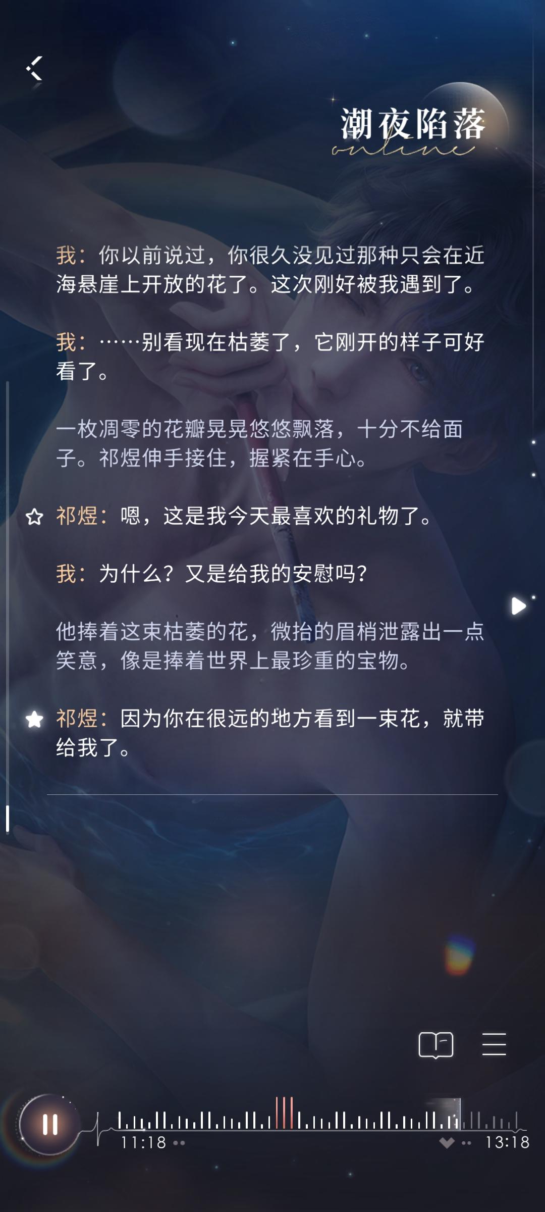 因为你在很远的地方看到一束花,就带给我了听到这里的时候我直接深夜破防。窝在被子里哭了好久,那种真挚的感情摆在我面前,他甚至只需要我在远方的思念就能哄好。洗澡卡任何人都无法拒绝,我也无法拒绝小鱼。我想对祁煜说【你很好,我很喜欢,我永远不会让祁煜等我。】#心动时刻征集#祁煜#恋与深空