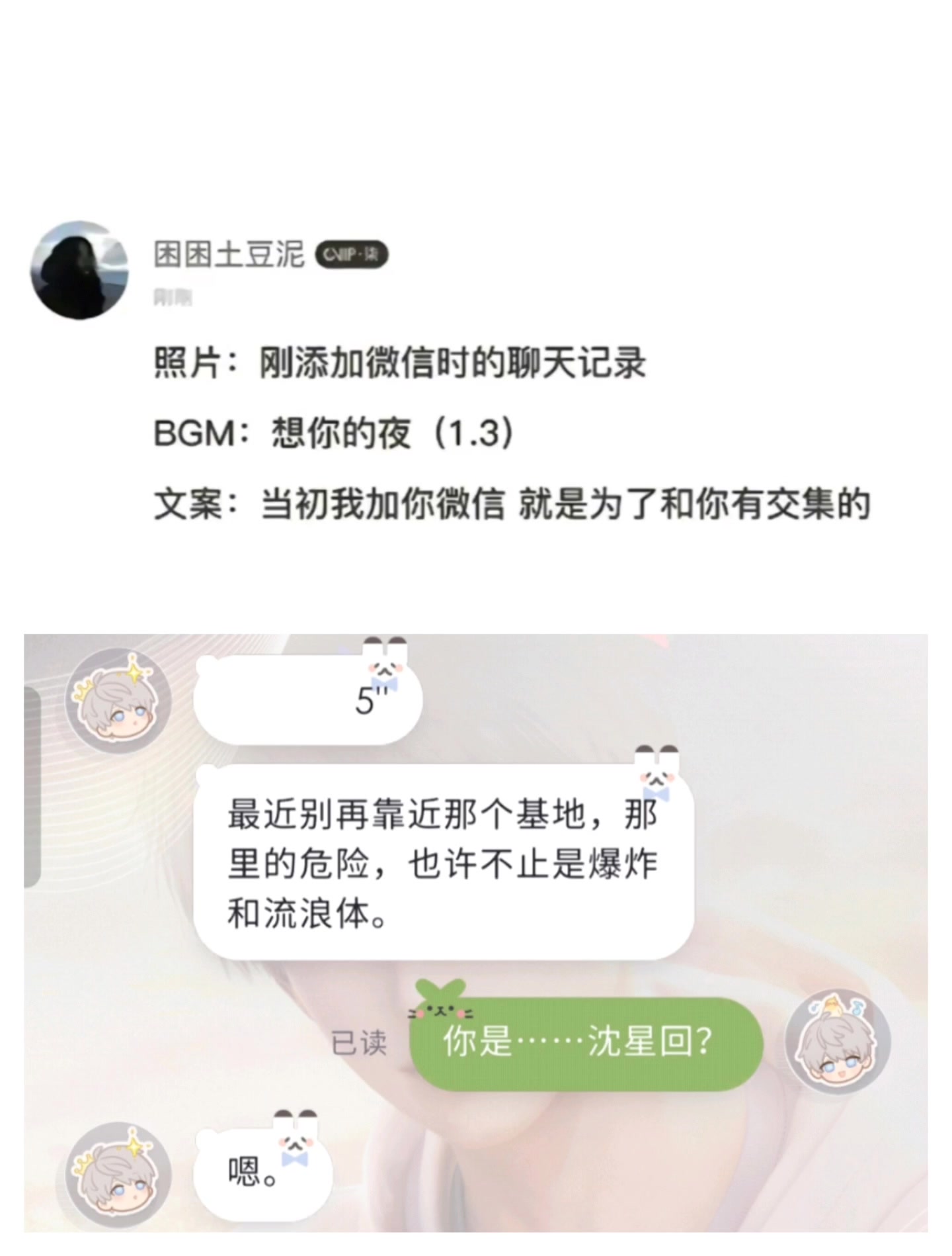 第一次见面的时候觉得自己肯定不会喜欢这类型的,刚开始我是⭐️推,后来看小鱼越来越喜欢,傲娇毒舌又粘人的🐟谁不爱!别人都想要杀我他想带我去抓小沙鼠哈哈哈,所以以后我不会再让祁煜等我喽#心动时刻征集#恋与星空心动时刻征集