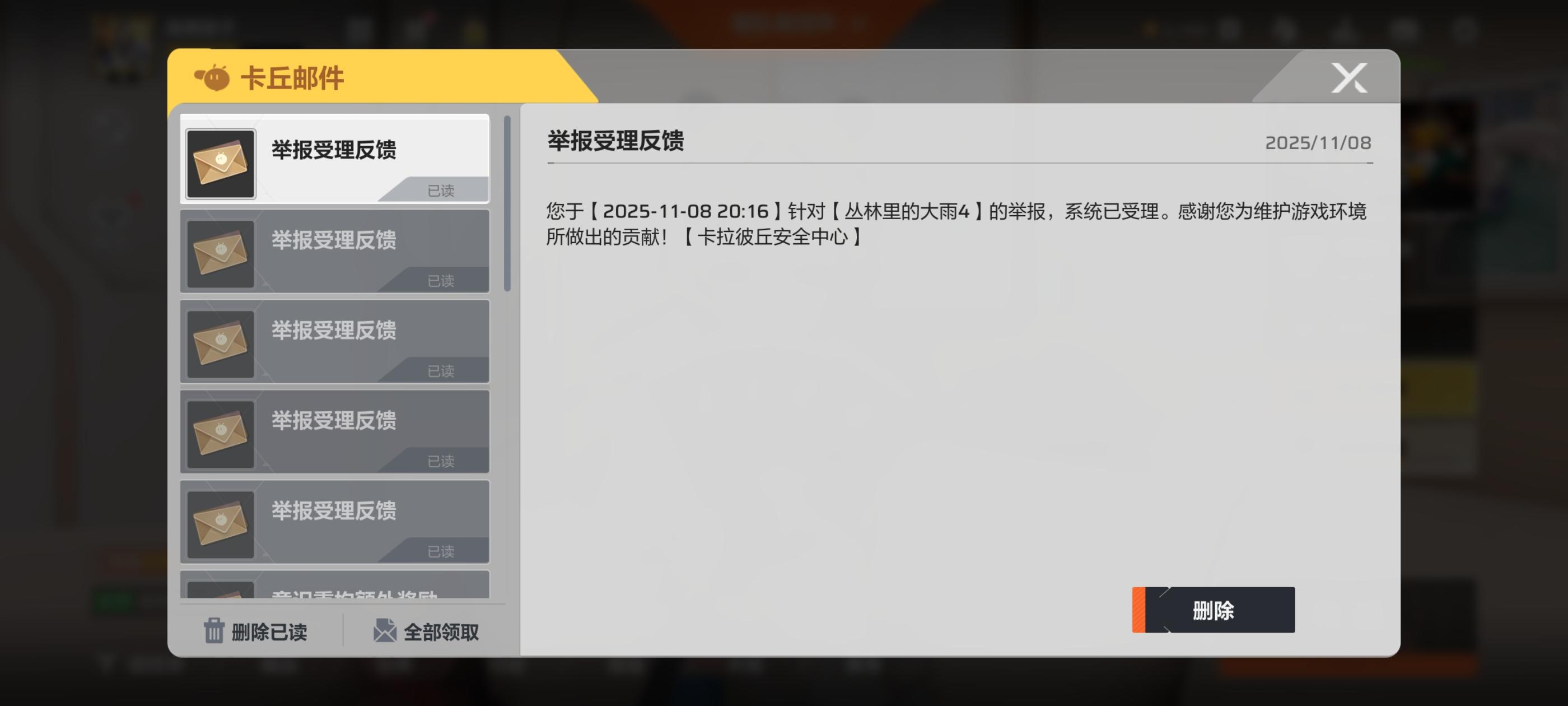邮箱是爆满审核连当天封都做不到真的可怜那就让高段位玩家自己审核然后给奖励行不行?加速来我家全部爆头,疑似好友一个胜率低的可怜的坐挂车不敢开战绩也不知道自己还能坚持玩多久,事后过一两天就邮箱一个封号了补偿都没有一个的哪天卖号了感觉也正常,幸亏就是一个手机号#游戏日常 #卡拉彼丘 #卡拉彼丘似了喵 #