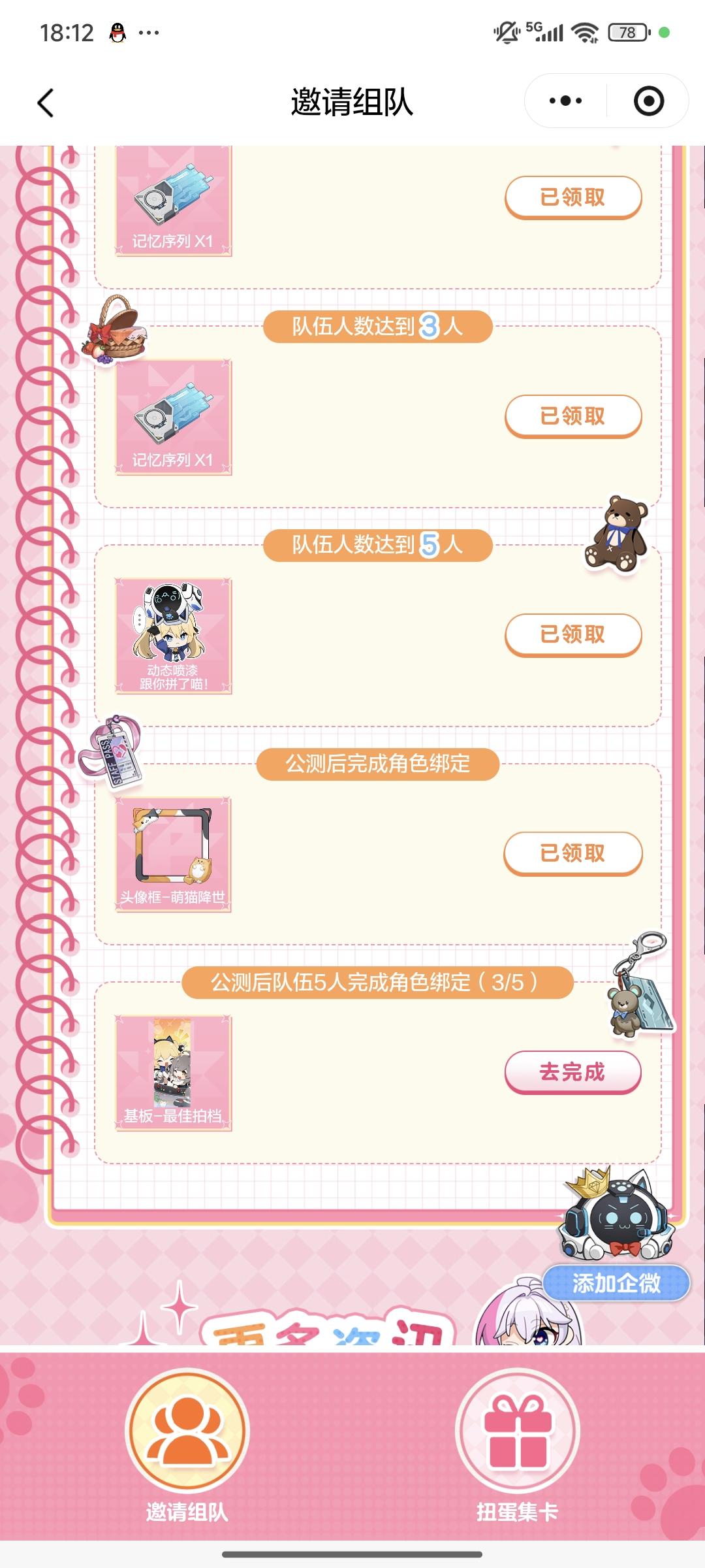 随便扫了个码几天了最后一个奖励愣是领不了,队伍也不给退你让人咋搞,还非要五个都绑定,两人以上不就行了吗??
