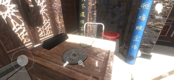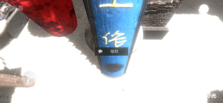 插销的两块木板就可以点掉了,露出了插销。放大两边的古画。会发现有字(下面会放图)