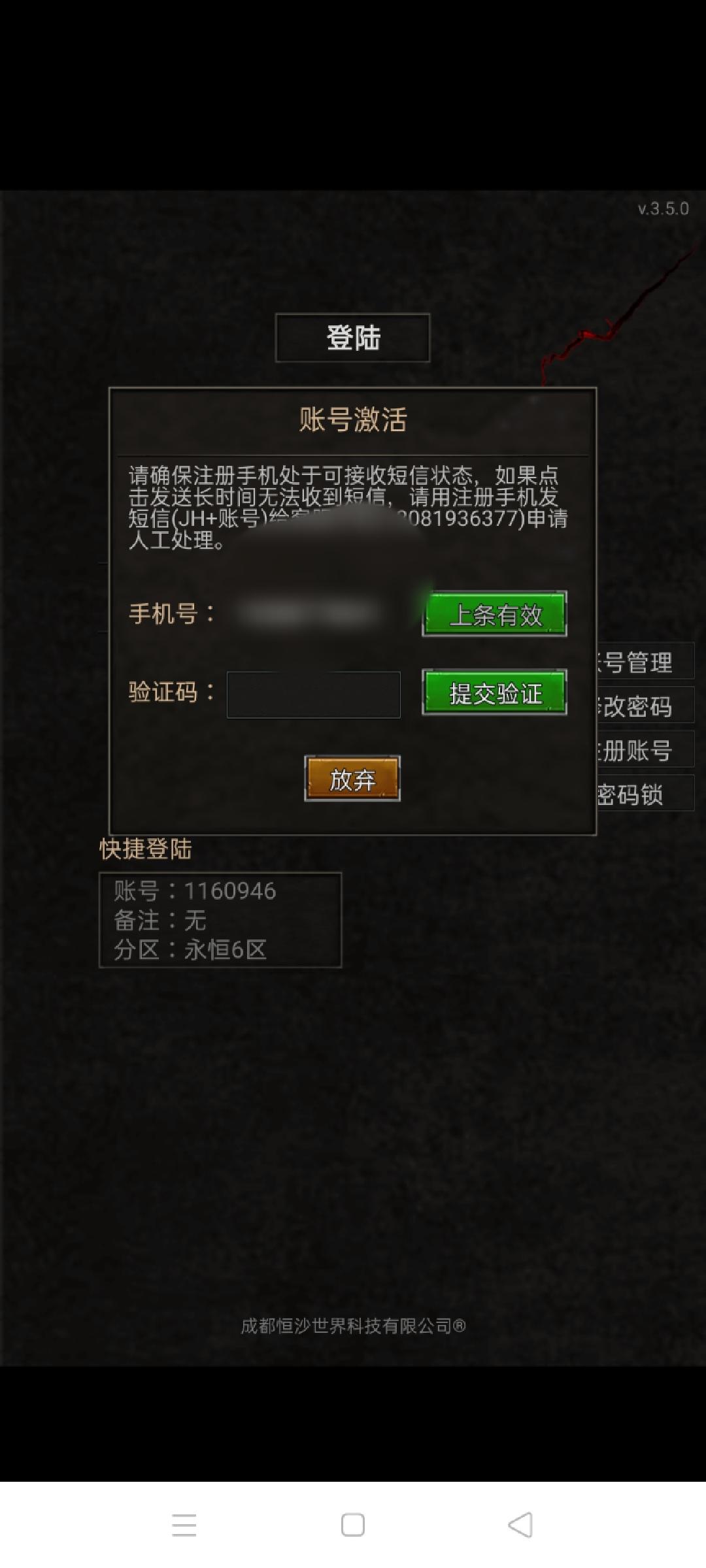 来你给我说一下为什么激活后还要在激活,在激活还不给发验证码,说上条有效,我把两个验证码又试了一遍,结果说错误,我就想知道你要的是哪个验证码,不是我故意找茬,游戏你挺好玩,体验了3分钟剩下的时间全卡登录上了,只要你退出了账号就再也进不去了,你把障碍放在入口,你也是个人才!