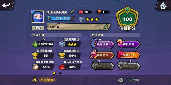 我相信很多人平民胜率很高,狼人胜率低,因为狼太难玩了,只要被怀疑或者发现就必死,被怀疑了就跟着看你做任务,不做就被投,狼队友死了就更不可能赢了,平民直接报团,根本没有翻盘的机会,我玩了这么长时间,可以说一只狼没有一点胜算,希望后续可以让狼做伪任务,完成任务给道具,可以不近身也能杀平民,或者其他道具,总之可以让狼轻松点,现在狼太难玩了