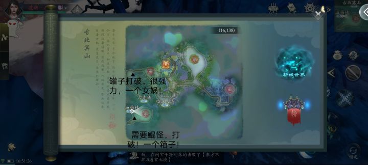 在石头村里面过乡客地图,有一个星柱打了就可以进去隐藏地图,另外封印兽有两个结局,一个直接打死会有大妖,一种打到残血,会带你过桥。另外展示一下五灵根😂