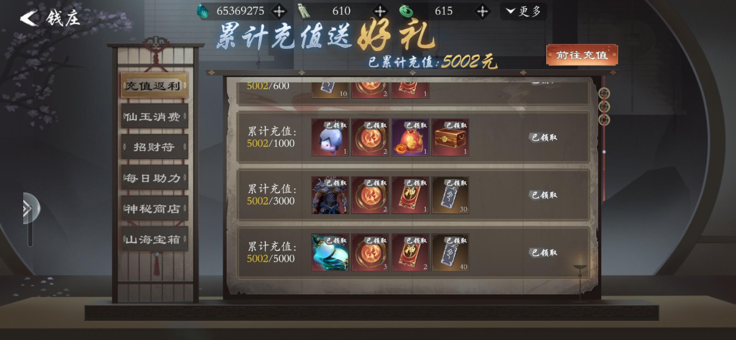 我这个账号充值5000元了 为什么没有观山海坐骑 请回复