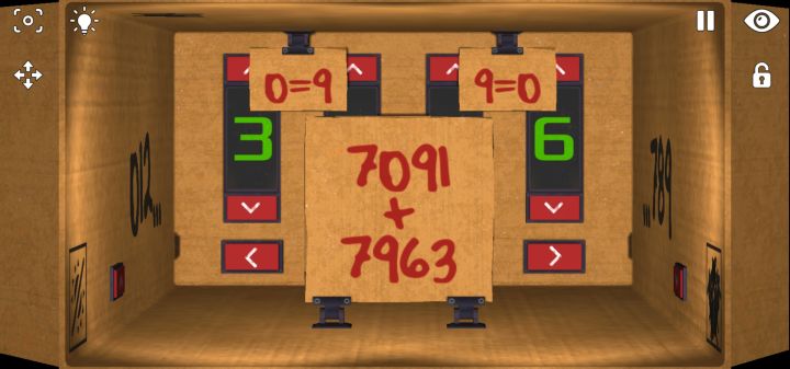 左边是012…,右边是…789,上面是0=9,9=0,下面是7091+7964,怎么都搞不懂,最后看了提示才知道是把每位相加,过10减9😂所以答案是15,9,15,4,也就是4944。所以跟左右也没关系