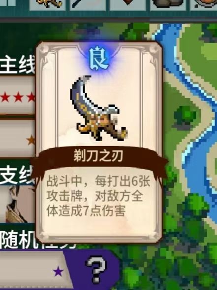 一回合结束战斗,敌人站在被打,队友站着看1.剧情去到悔婚小美,系统强行安装破碎的誓约,这个东西不能卸载,第五张牌后每出一张掉一滴血。2.购买猩红法杖,掉一滴血摸一张牌,3.牌堆一半以上是0消耗的短小之刃,前期可以再加几张回血、增加卡片数量的、加元素能量的卡牌(这时候已经无敌了,有了回血圣遗物,其他什么卡片都不需要)4.加快战斗速度,可以配合石中剑和剃刀之刃这类增加力量或者达到卡