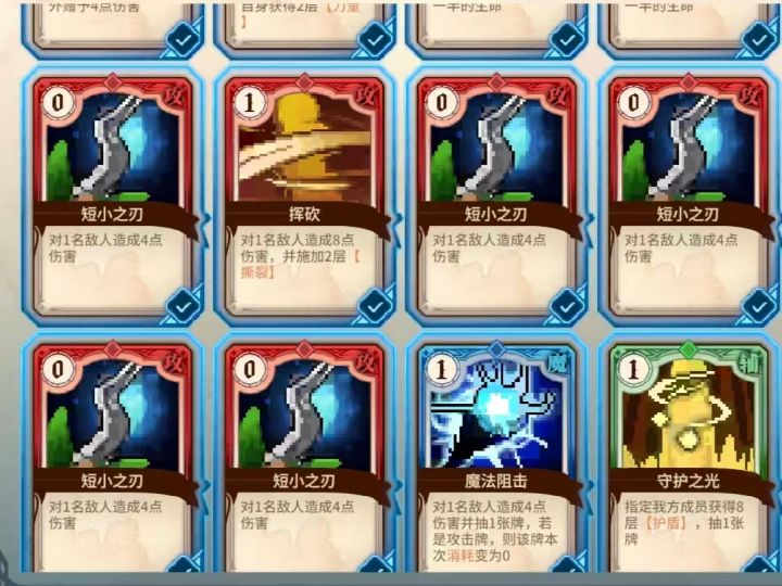 赛弥尔和伊莱后面随便来个输出。牌的话五辅助四魔法道具只要加攻击和易伤剩下主要以零费小刀为主,主角要哪个职业都可以,兔子和伊莱大招加攻需求的牌都是二魔法三辅助,后排输出大部分的牌为一魔法四物攻,物攻牌主要零费小刀很容易刷运气好的话大概一轮就能把BOSS毙了(前期还没玩到中期呢)伊莱加体质兔子加护盾在前期防御力是够用的。顺便问一下英雄得打到第几章才能全解锁