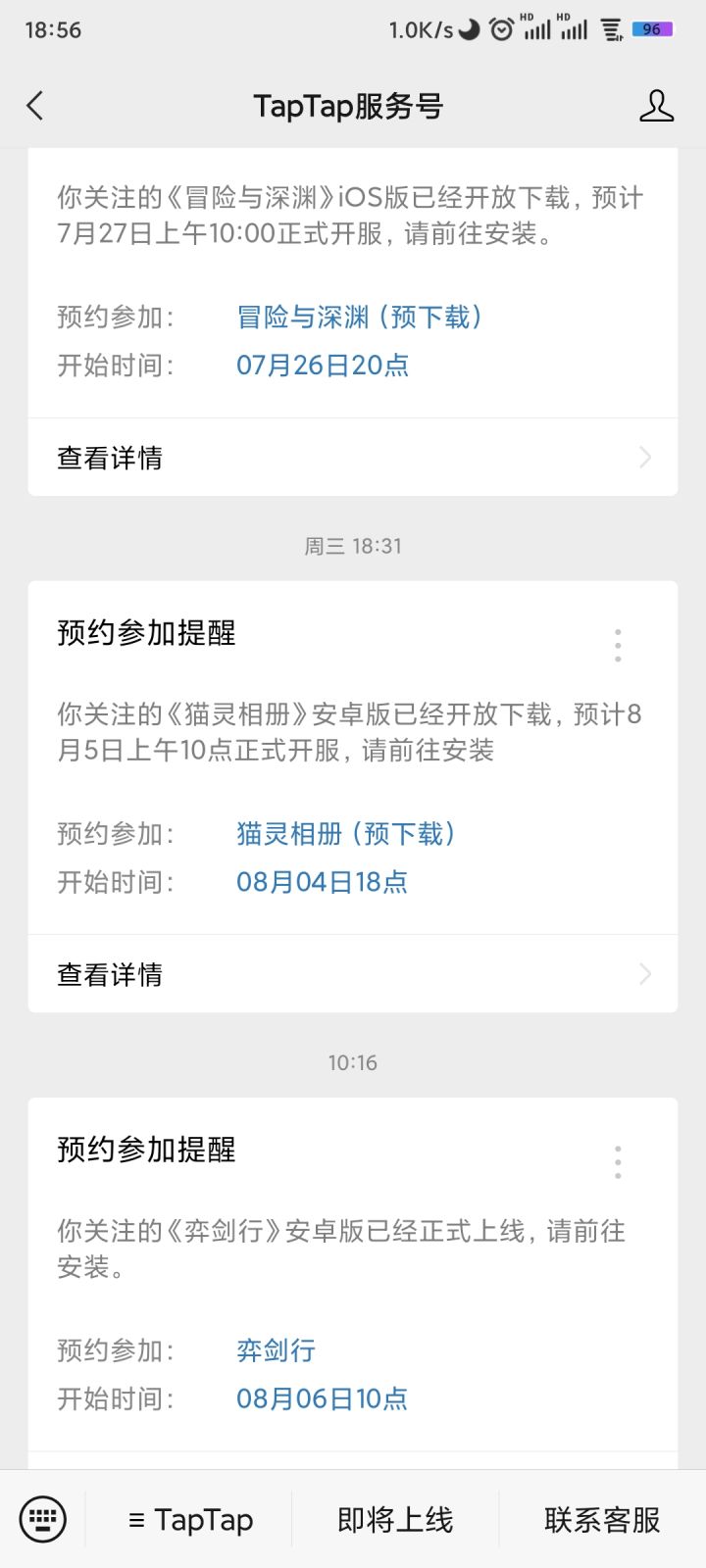 不知道算不算bug,每次我在TapTap切换界面(比如从动态看通知再切换回主界面)时,手机上方的通知栏会冒出一个TapTap的APP通知,说是TapTap正在后台运行可能导致系统卡顿(反正大概就这意思)的通知,这个通知在界面切换时会在通知栏一瞬而过(闪一下就没了),我不知道这是MIUI里的设置问题还是TapTap自身的某些问题,如果是,请告诉如何设置谢谢。另外上次提的动态红点问题在新的TapTa