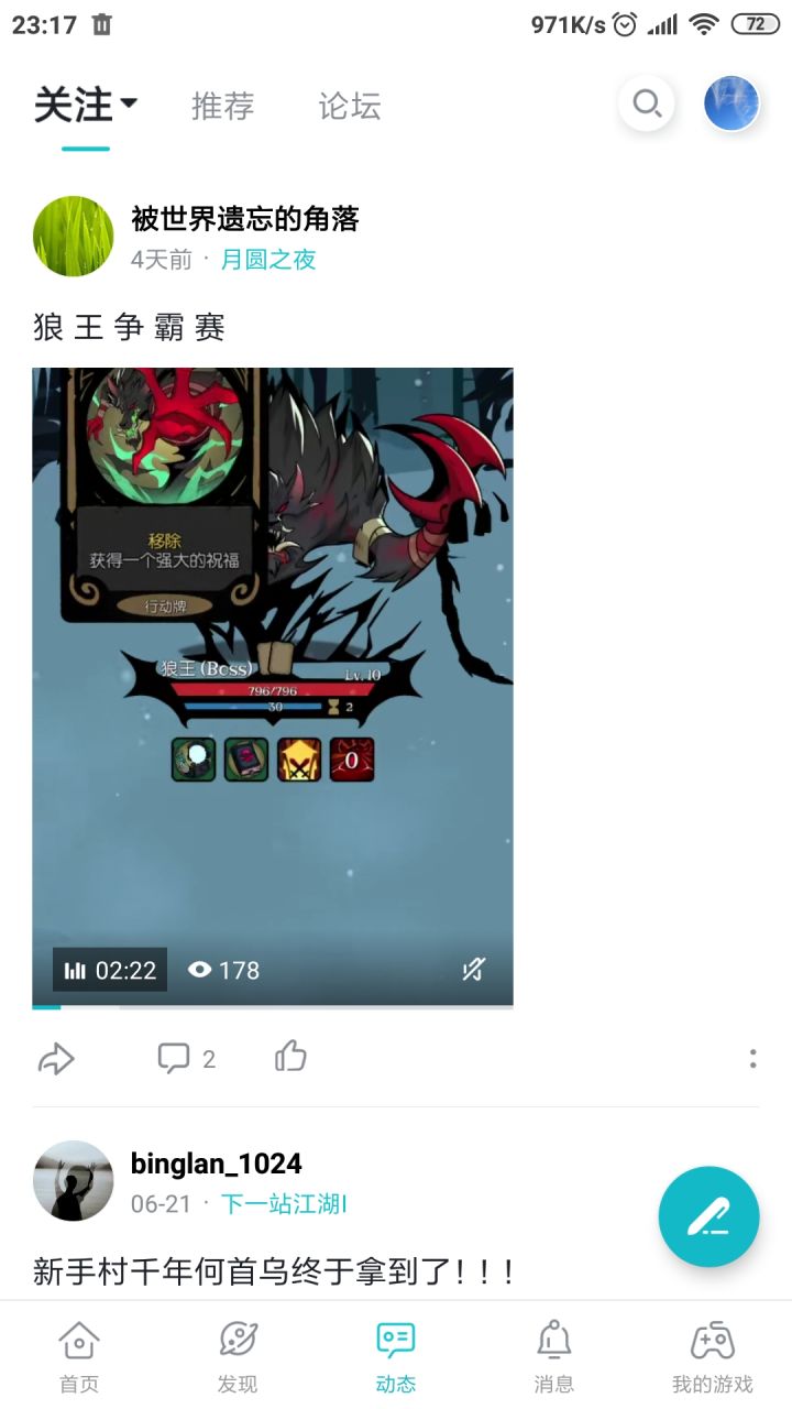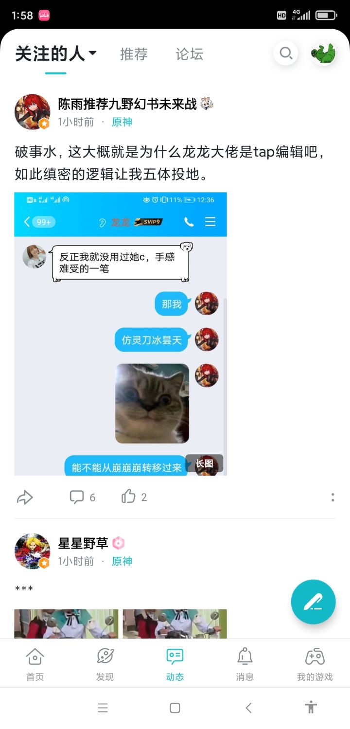 更新版本以后现在 关注 本来是显示 关注的游戏和关注的人 现在 下拉刷新 会显示关注的游戏论坛别人发的帖子 那些人我也根本就没有关注