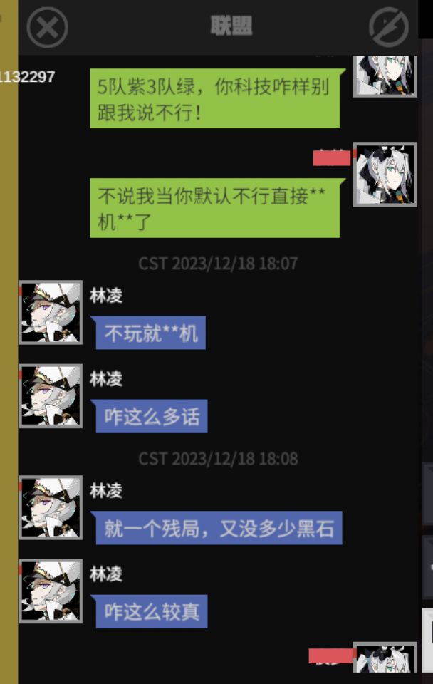 这个是我们的联盟聊天,只有我和我盟友两个人,出现奇怪的东西了,我截屏了,再看的话,找不到了