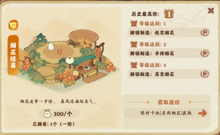 第一期:菊丛绕舍第二期:岁景濯春第三期:晓絮春庭第四期:兰黍沐芳第五期:秋庭鸢语第六期:挥春雅筑图鉴解锁位置:天工图鉴→天工建筑→趣景→活动奖励;活动攻略:活动期间通过完成订单、蒲公英小队、种植生产等任务对建筑进行升级,解锁不同阶建筑外观。建筑达到5阶后开启切换外观功能,可以自己选择喜欢的阶段外观展示。#桃源深处有人家 #天工巧建