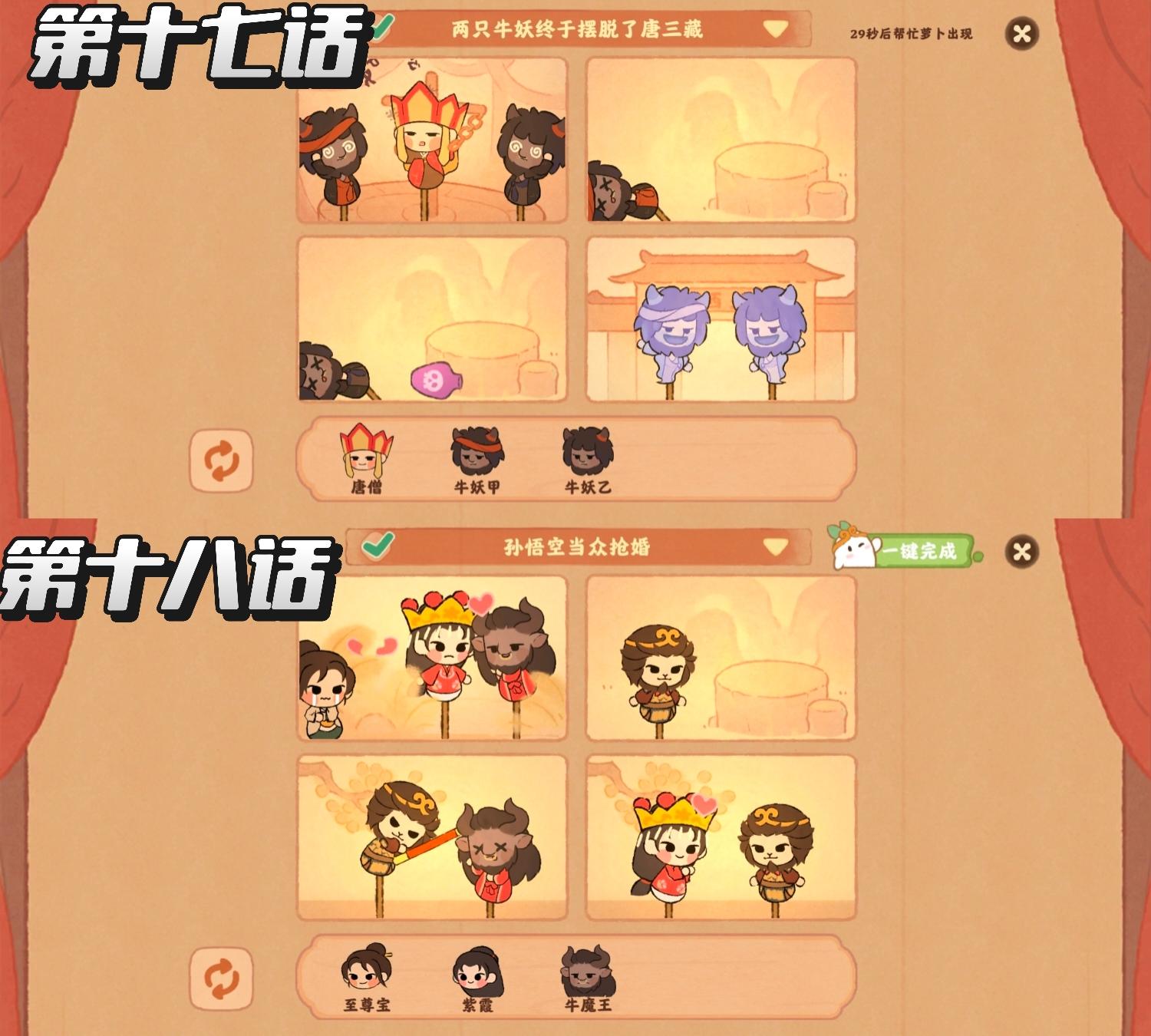 「缘月戏梦」进度18/20 第十七话:两只牛妖终于摆脱了唐三藏 第一步:场景一放入牛妖甲,唐僧,牛妖乙第二步场景二放入牛妖甲第三步场景三放入牛妖乙第四步场景四放入牛妖甲,乙 第十八话:孙悟空当众抢婚 第一步场景一放入至尊宝,紫霞,牛魔王第二步场景二放入至尊宝第三步场景三放入至尊宝,牛魔王第四步场景四放入紫霞,至尊宝#桃源深处有人家 #桃源深处有人家攻略 #桃源深处有人家