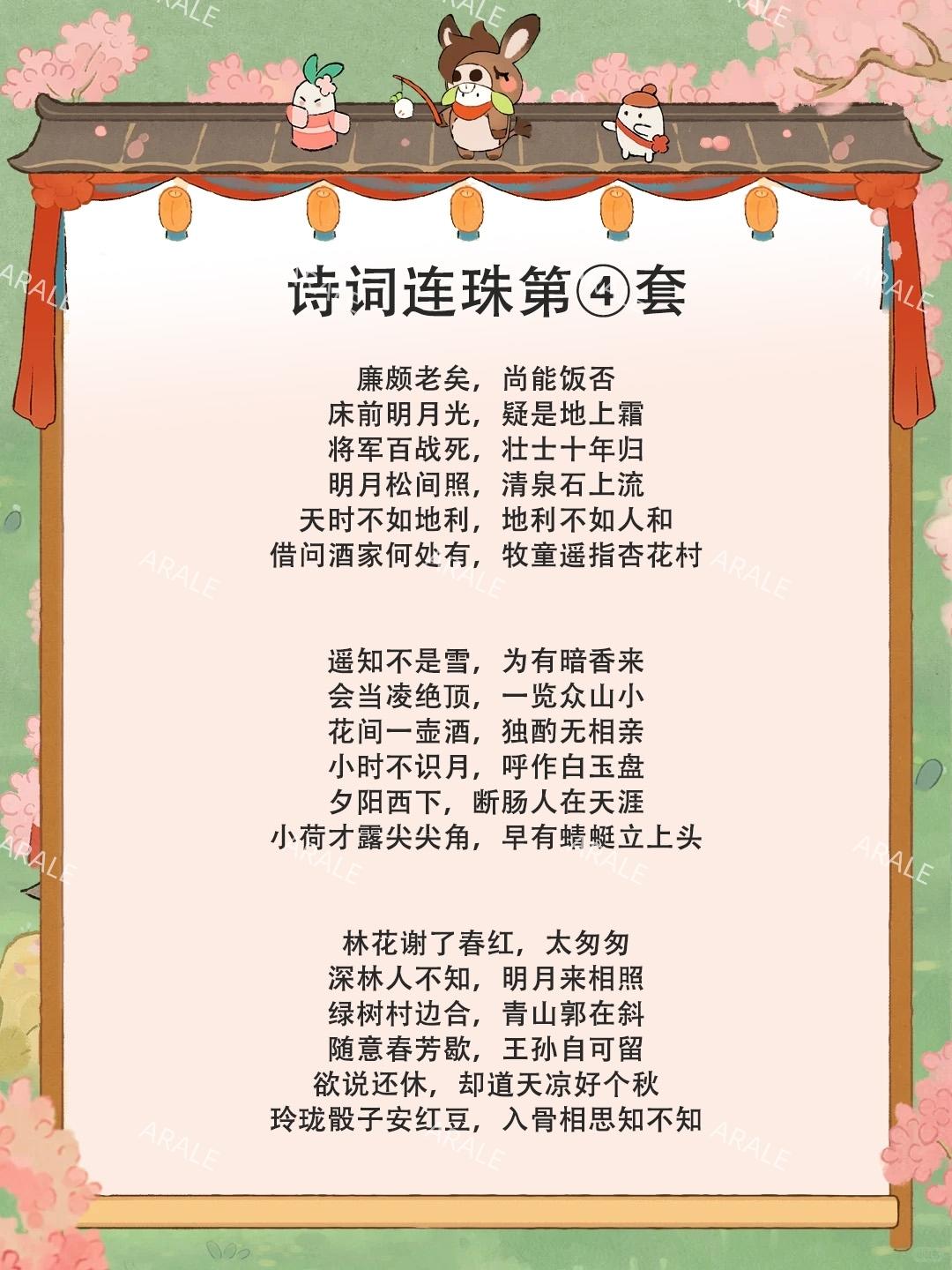 山高水长——长生不老——老生常谈——谈天说地——地久天长——长相厮守——守株待兔——兔死狐悲——悲天悯人——人山人海——海枯石烂——烂醉如泥——泥古不化——化险为夷——夷为平地——地动山摇——摇身一变——变本加厉——厉精图治——治国安民#桃源深处有人家 #桃源妙语诗才攻略