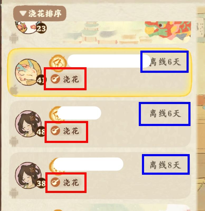 花最长的生长期也不超过两天,离线超过两天不可能有花可浇。但是一直这样显示,官方赶紧修修,啥子bug哦。很烦的,一大串儿离线多日显示浇花的。
