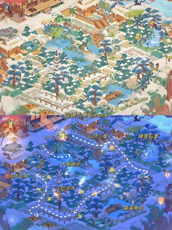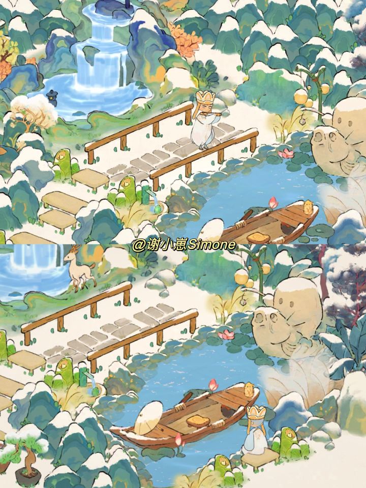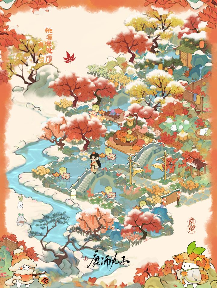 桃源的夏季:世外桃源 桃源的冬季:白雪地下是绿意盎然的青草,湖里随处可见荷花,水面清澈不结冰,五颜六色的树叶从不掉落……#新游安利局
