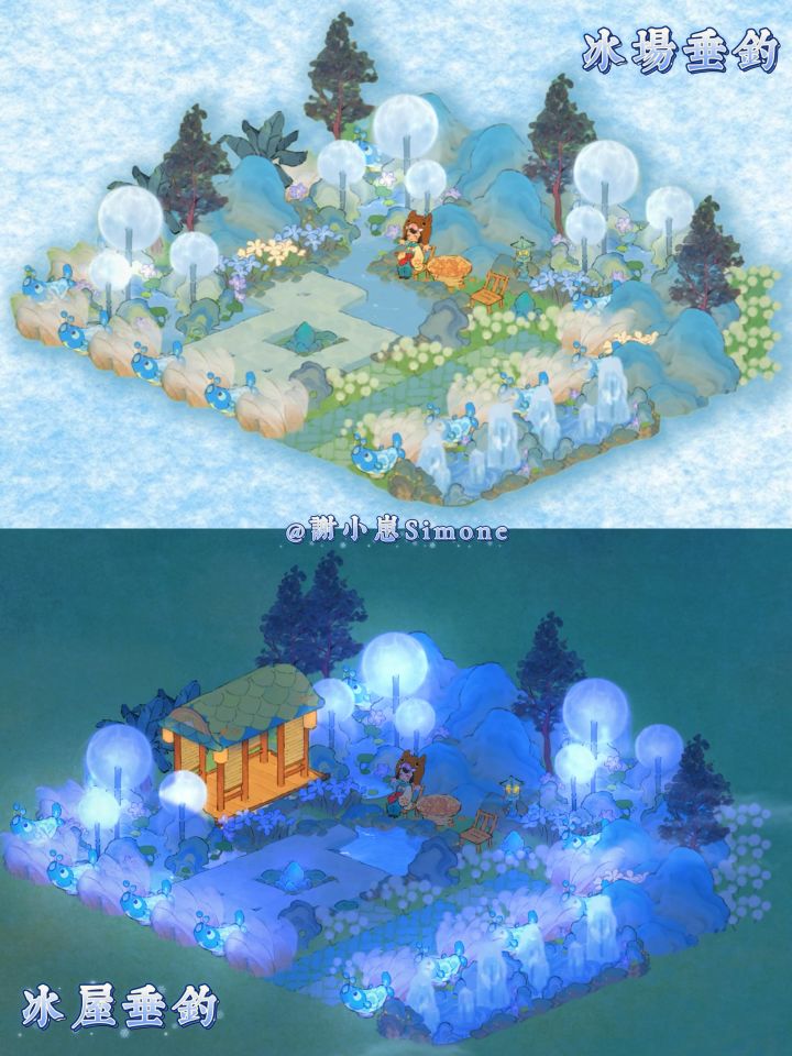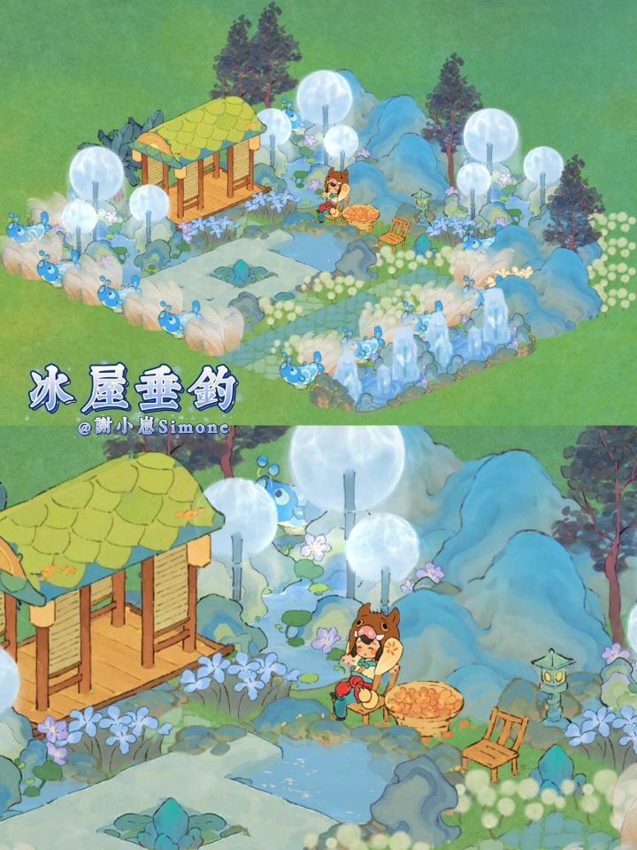 绒絮泉搭配蓝色鲤鱼灯超级「哈尔滨」哈哈。这个冰雪钓鱼场有「冰场垂钓」和「冰屋垂钓」两种场景,抄录发布了一种,地基都是一样的,可以根据自己喜欢的调整哈。造景编号:wz296328作业可抄回家,禁未授权商用和搬运。唯一id:谢小崽|桃源V区。#游戏安利#国产游戏#桃源深处有人家#桃源深处有人家装修#桃源深处有人家布局展示