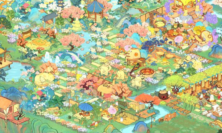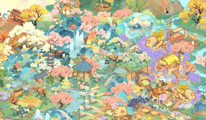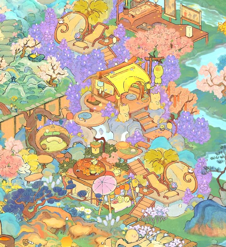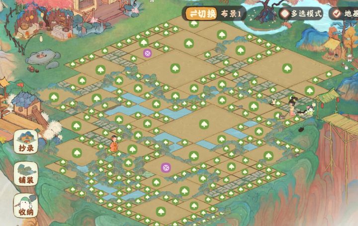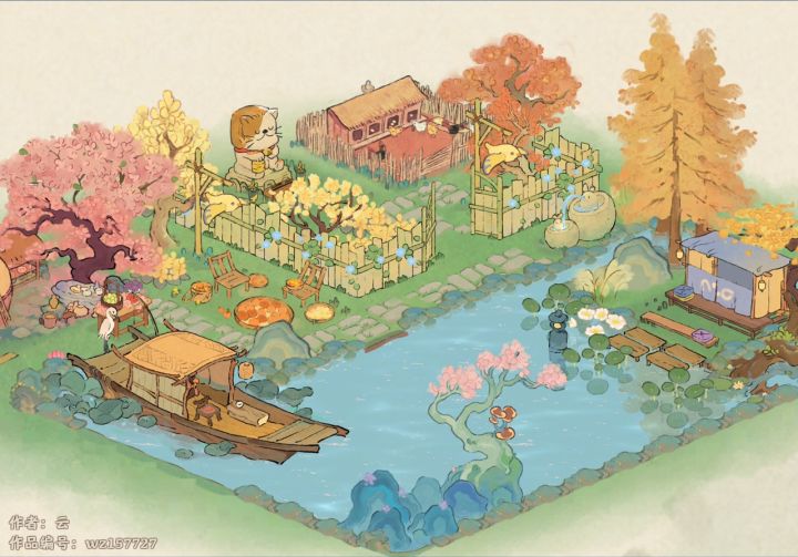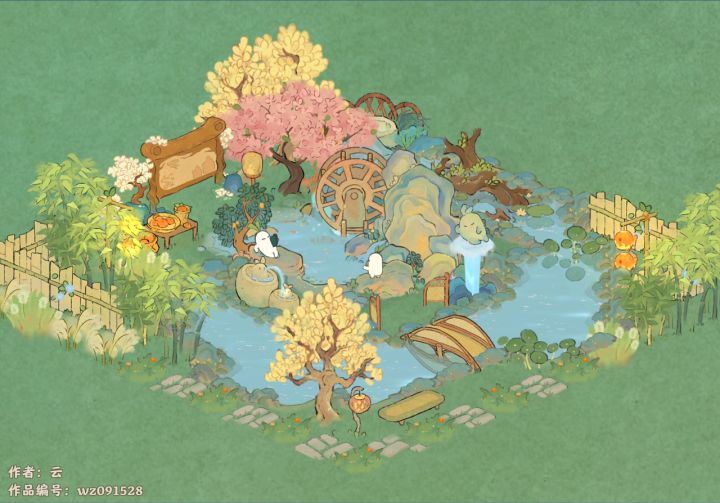 中间牡丹亭一条路是借鉴的其他姐妹的布局,在此基础上继续发挥,右上猫窝突显层次感,右边烧烤窝放了3个生产景,好顺下来收东西还和谐融入,下篇二岛右边也有个集中生产布局,两块一起哐哐收!我嘎嘎懒直接手动划线了哈哈