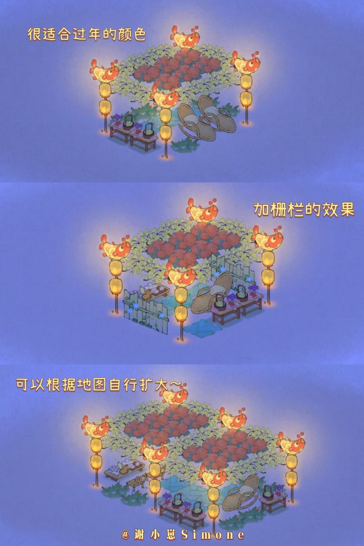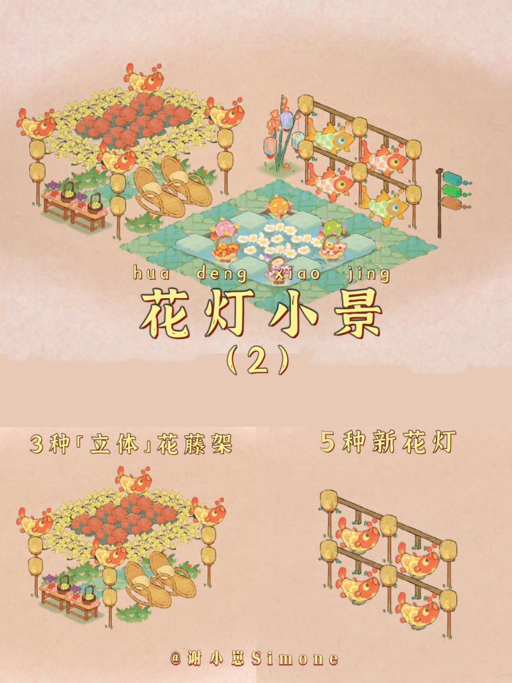 桃源灯会:3种立体花藤架+5种花灯新摆法大家好,我又给大家带新家具来了(正在计划改名叫巧匠崽哈哈哈)。花灯小景「第二弹」是3种立体花藤架和5种花灯的新摆法,占地面积都不大,强烈推荐立体花藤架,氛围感十足!造景只发了首页图上的一整套,非常适合过年用,所以在这里提前给大家拜个早年。编号:wz194347(V区)。原创不易,搬运造景展请注明作者信息。#桃源深处有人家装修#桃源造景展#桃源深处有人家攻略