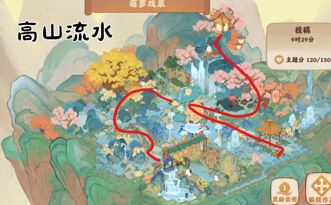 图文已经发过,视频版更直观。整体布局的思路是主干道清晰,每个小区域内有起有伏,山水花草重叠但不杂乱。(这个系列终于毕业啦!!!)#宝藏游戏安利派对