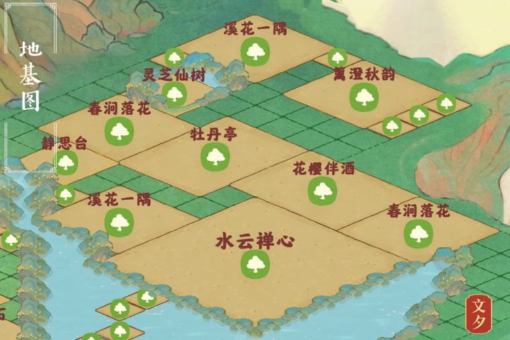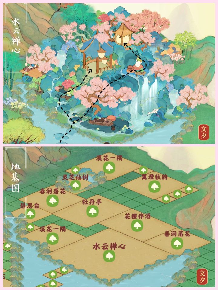 位置:二岛右上牡丹亭可以作为主亭,借助“溪花一隅”的楼梯做出登高效果。#禅茶一味