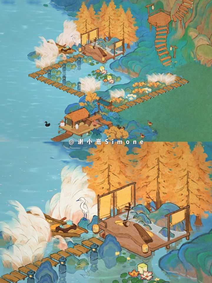 白露节气建筑&仙女湖码头布局鲁公神鱼|仙女湖|码头|芦苇荡|弦柱萝音&白露节气建筑「蒹葭苍苍」#桃源在线吸猫计划#桃源深处有人家布局展示##桃源深处有人家#桃源布局大赏#桃源深处有人家装修