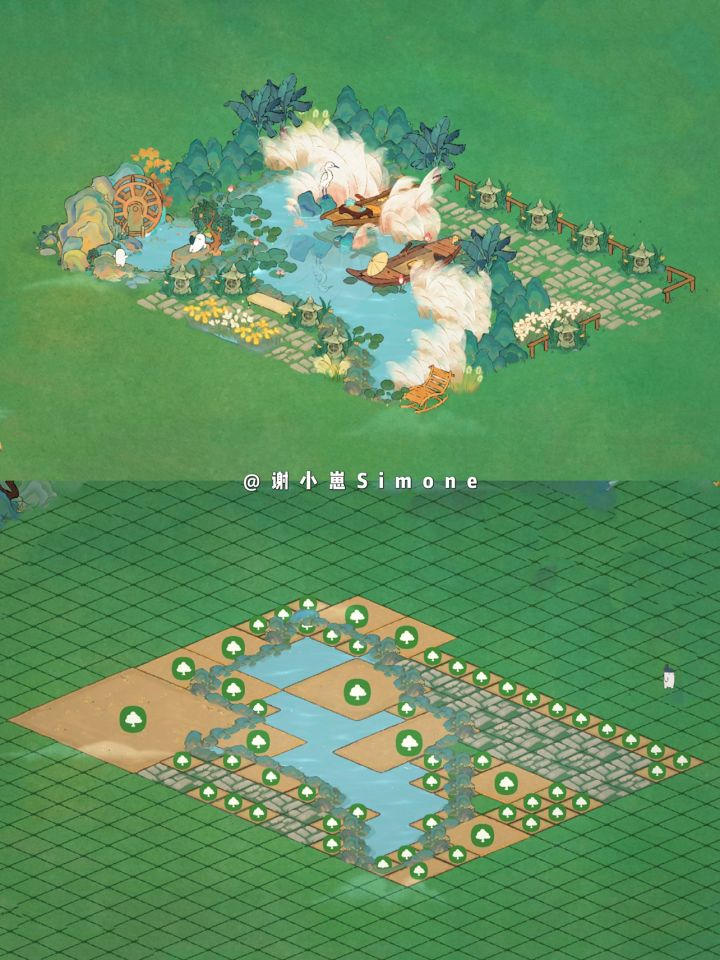 节气建筑专属:上篇发了「蒹葭苍苍」的仙女湖码头布局,再发一个陆地版的布局,实在太爱叮咚水车了,哪里有空往哪里塞hhhh~#桃源深处有人家装修#桃源布局大赏##桃源深处有人家#桃源深处有人家布局展示