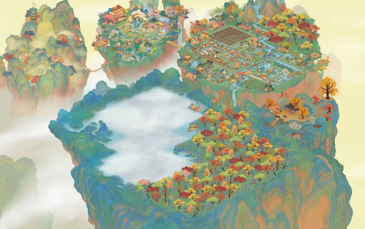 流水建筑太美了,随便放一放就很好看了#TapTap游戏轻赏#桃源深处有人家布局展示#桃源深处有人家装修