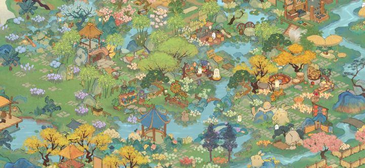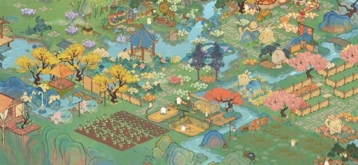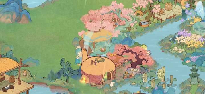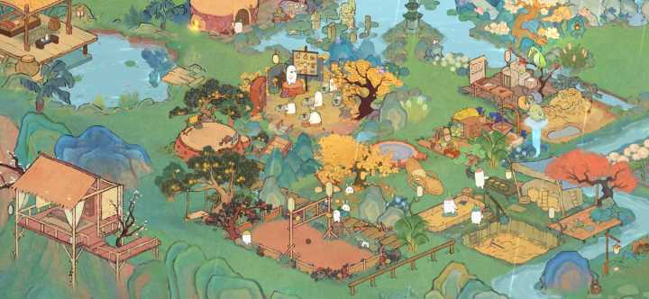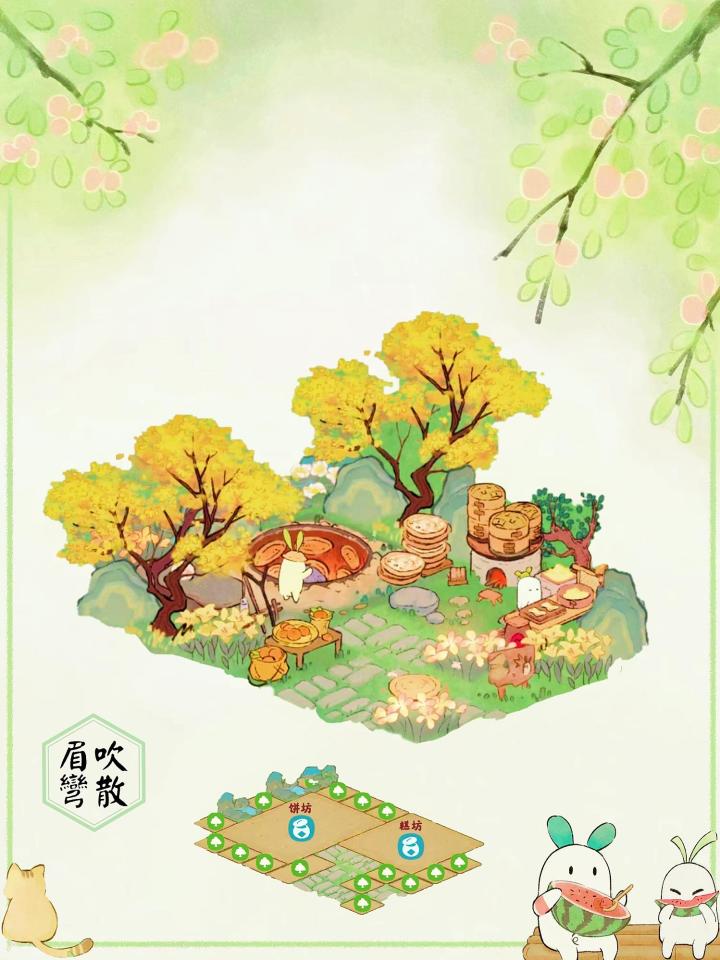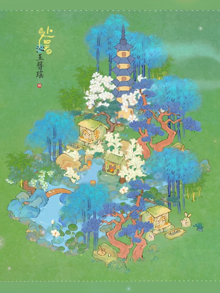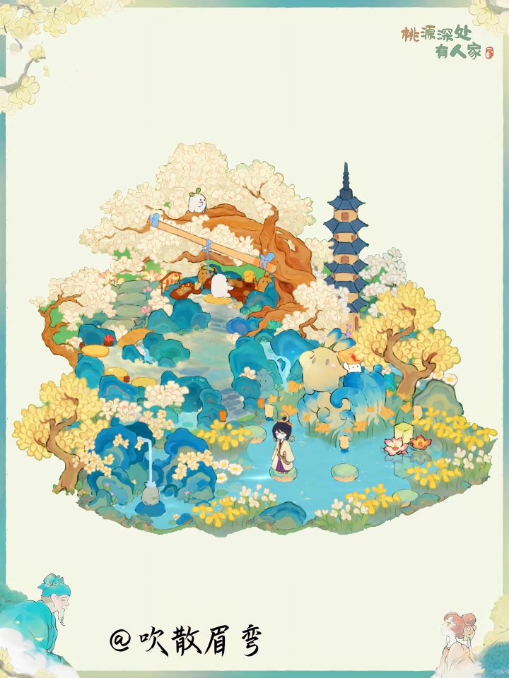 🌾处暑节气建筑:沁玉簪瑶布局|桃源深处有人家🍃桃源深处有人家节气建筑布局🦋主要建筑:沁玉簪瑶、落槐浮香、土地庙、岁寒青松、花檐塔寺