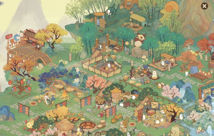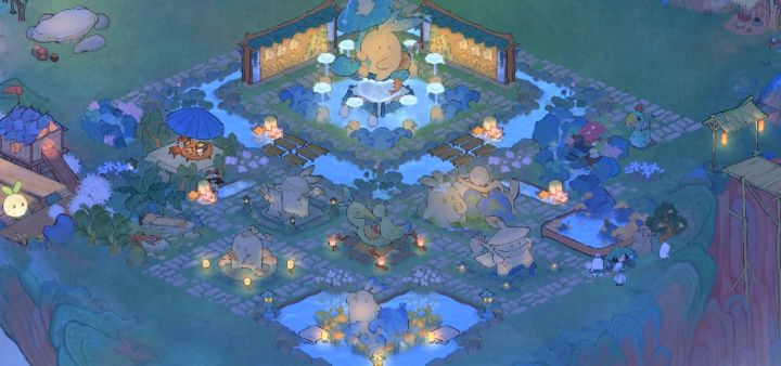 作为后期才入坑的半月小萌新还是选择了零氪观望,爆肝的我已经感到很吃力…放上零氪一二岛和半个三岛的布局,没有完全盖好,但是我已经穷得叮当响,抽不了了(╥﹏╥)图1—5都参考了大佬们的布局(给大佬们献上膝盖)。图1的小吃街没有原作的烧烤坊所以换上了仓库,再拼接了走秀台;图2的许愿台拼接了一个原创的F人放空登高台,右边拼接了一个土地庙;图3木梯不够了,步步
