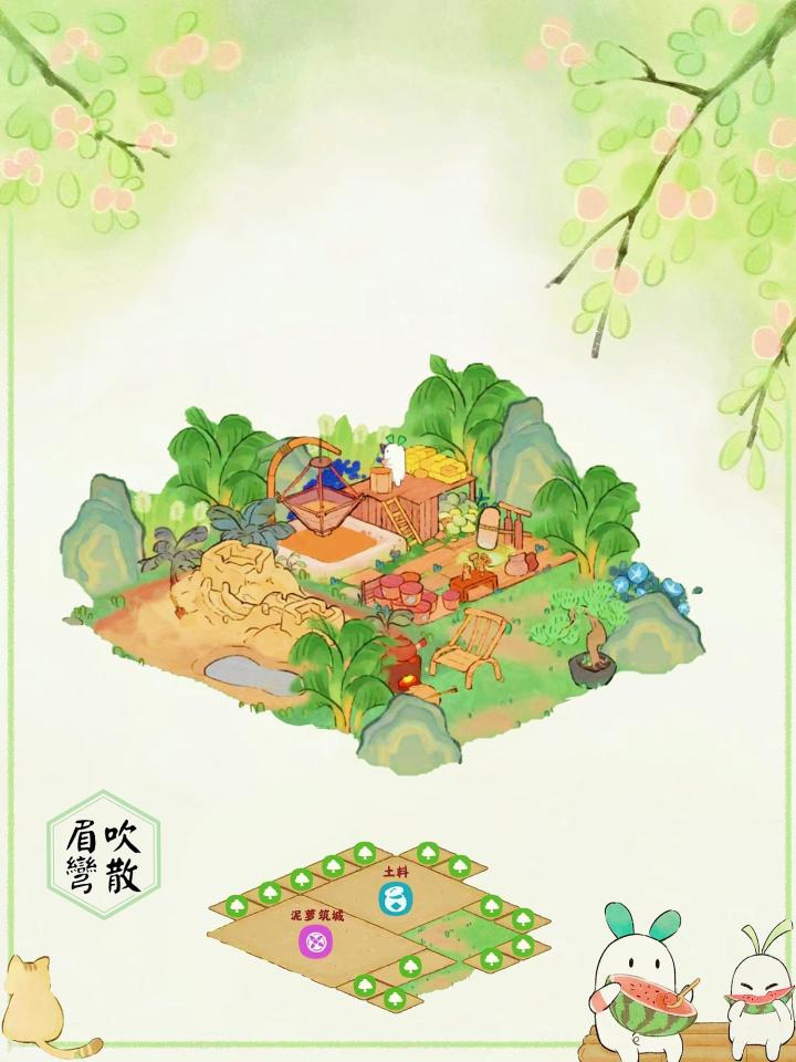 第一山头可以完全按照喜好布置,把土地都撤走。生产类建筑可以按下图全丢第二山头右边。同一个界面就能看到除水产外所有生产类建筑的情况,左下的土矿可以提示同时收货木材竹子,最下方花圃。水产是每三小时看一下就行,蒲公英右下角菜单会有提示。个人觉得很方便,有更好的改进建议也欢迎~#安利我的小众宝藏