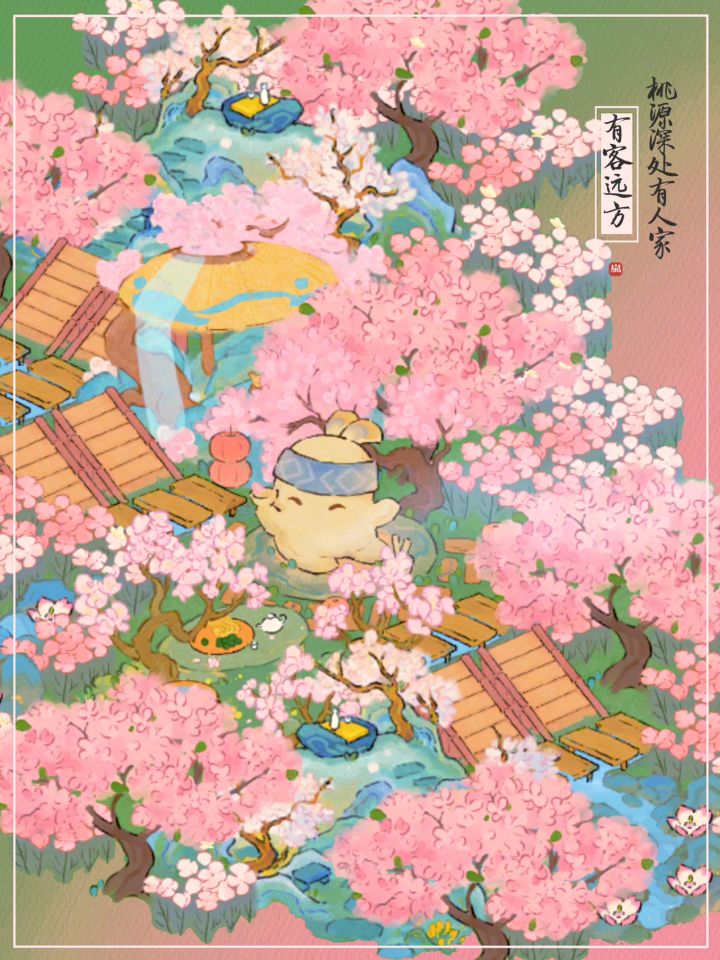 🌸有客远方布局|桃源深处有人家💕💖粉色系布局之亭台“桃”阁。✨主要建筑:有客远方、夏花繁荫、花樱伴酒、云杏蕊香#游戏安利#游戏推荐