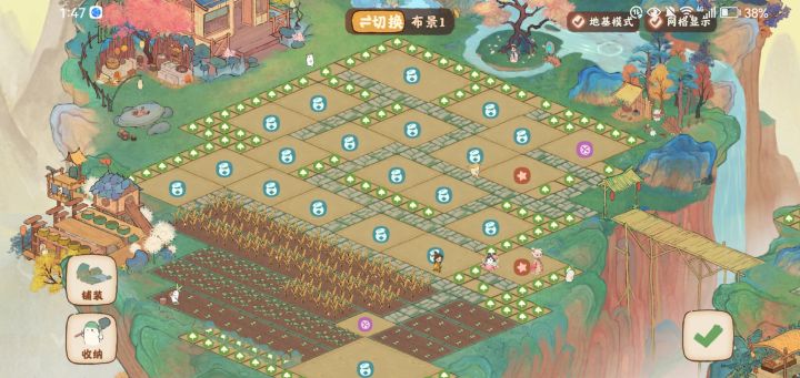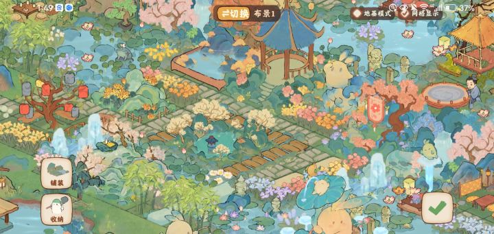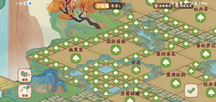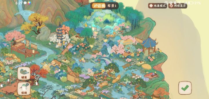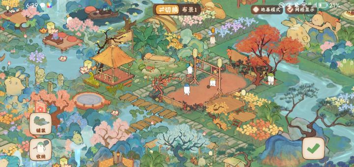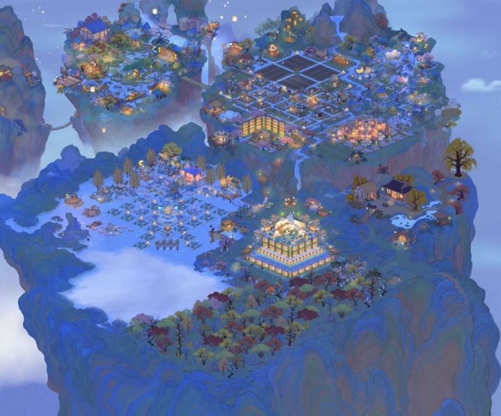 `首先是一岛,我改过很多版最后还是个人觉得放一起好收好种哈哈。`二岛左边二,三张为全局上下,我从第三张开始分了瀑布一个版块,竹林一个版块,牡丹亭一块(散步溜达),湖中大景观(上边是书画,旁边可以掷箭投壶,转进去就祭祀拜庙,下边左边喝酒,右边桃花林作诗,还可以就近湖心亭玩,湖我填的很满不喜欢的宝可以做减法。)`二岛右边我借鉴论坛里的楼梯让它看起来更有层次感,图片中下是copy的是吹散眉湾这个大佬